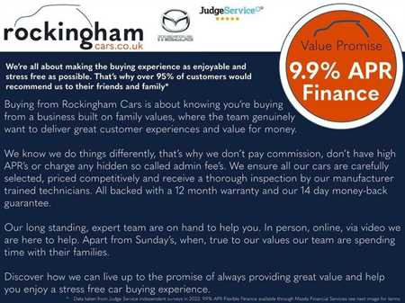 Cash Price: £11,990 | Deposit: £1,200 | 48 Month Term | First Payment: £187.82 | 46 Monthly Payments of £187.82 | Amount of Credit: £10,790 | Total Charge for Credit: £3,055.04 | Total Amount Payable £15,045.04 | 9.9% APR Representative | 7.14% Rate of Fixed Interest | Admin Fee: £10 | Final Payment: £5,017.50 | Annual Mileage: 40,000 | Excess Mileage Charge: 10p per mile
