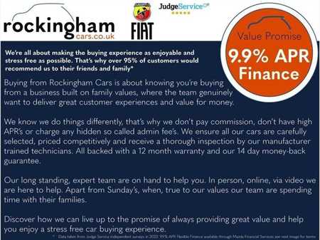 Cash Price: £11,990 | Deposit: £1,200 | 48 Month Term | First Payment: £187.82 | 46 Monthly Payments of £187.82 | Amount of Credit: £10,790 | Total Charge for Credit: £3,055.04 | Total Amount Payable £15,045.04 | 9.9% APR Representative | 7.14% Rate of Fixed Interest | Admin Fee: £10 | Final Payment: £5,017.50 | Annual Mileage: 40,000 | Excess Mileage Charge: 10p per mile